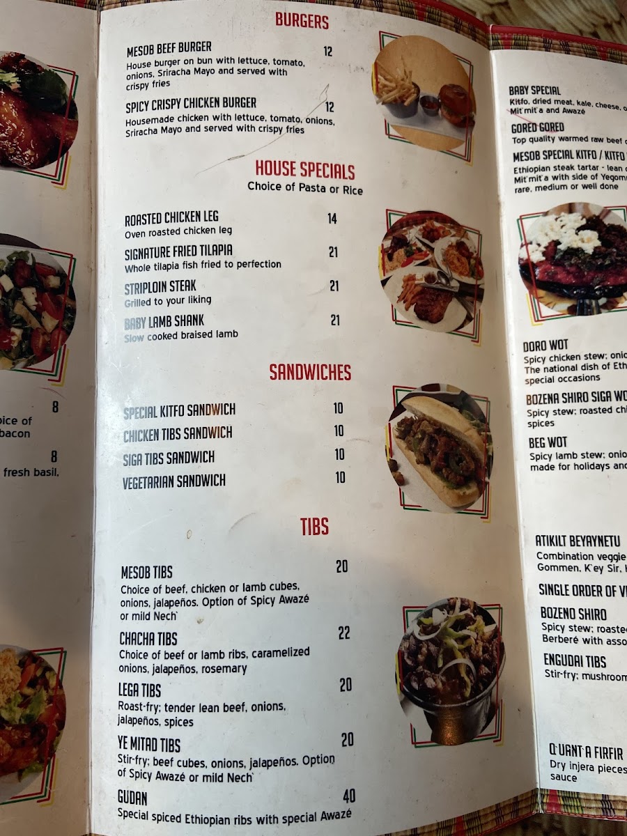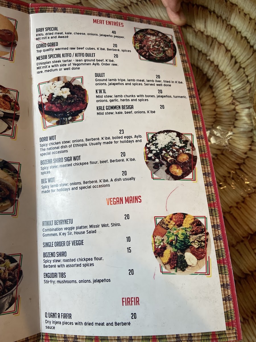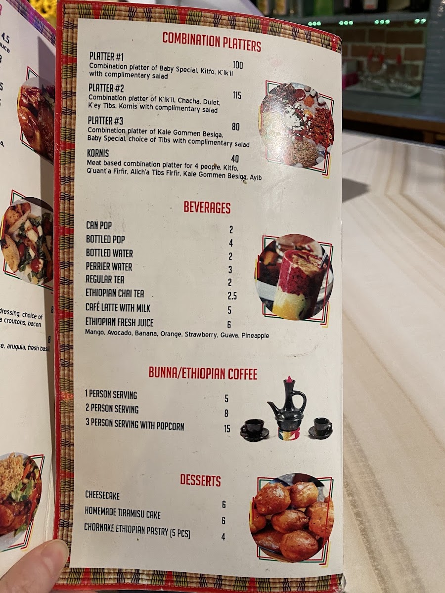 For those who are eager to explore the world of sandwiches, indulge in the Siga Tibs Sandwich, featuring either beef or lamb, cooked to perfection and layered with fresh ingredients for CA$15. The Dulet Sandwich is a must-try—ground lamb studded with rich flavors from spices, served on freshly baked Italian bread, also available for CA$15. Don’t forget to delve into the delightful Firfir options for a unique twist on traditional Ethiopian cuisine, with choices like Quanta Firfir or Tibs Firfir, both priced at CA$25.